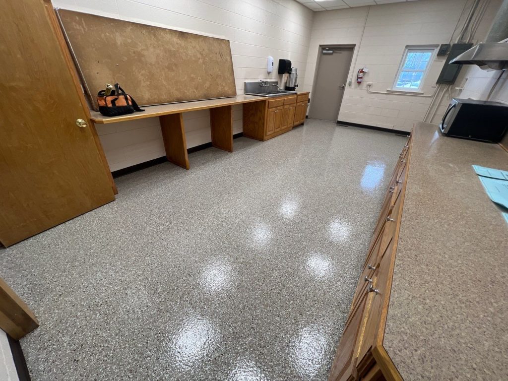 A concrete coating in a locker room helps maintain a clean, safe, and visually appealing environment while reducing maintenance efforts and costs.